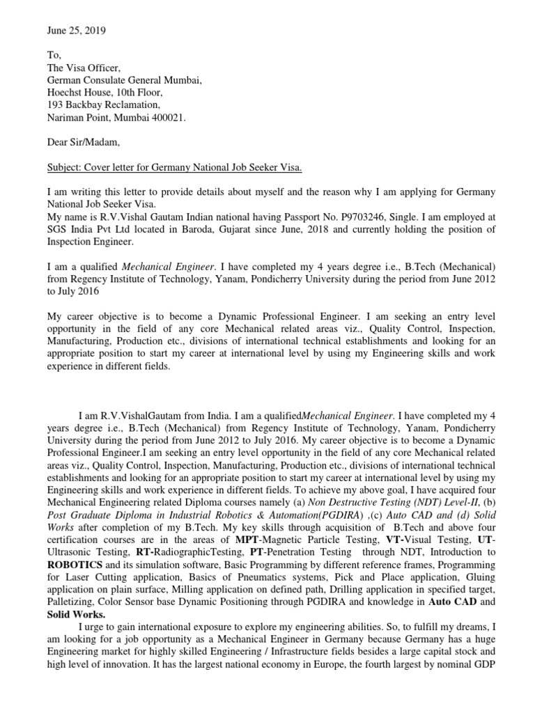 We did not find results for: Maybe you would like to learn more about one of these? Sample cover letter for german employment visa. Check spelling or type a new query.